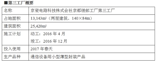 京都綾部工廠于2005年成立以來(lái),生產(chǎn)出市場(chǎng)份額占業(yè)界首位的高端ASIC用FCBGA基板等產(chǎn)品,積累了高密度布線技術(shù)、生產(chǎn)工序自動(dòng)化技術(shù)、小型薄型化生產(chǎn)技術(shù)等尖端技術(shù)。2014年夏天,在工廠用地內(nèi)建立了二工廠,生產(chǎn)通信設(shè)備用的小型薄型封裝。此次建立三工廠,旨在進(jìn)一步擴(kuò)大市場(chǎng)份額。